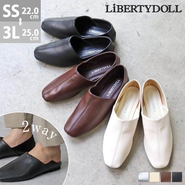 バブーシュ スクエアトゥ フラットシューズ 2way レディース 1cmヒール No.3035 22cm-25cm 黒 リバティードール