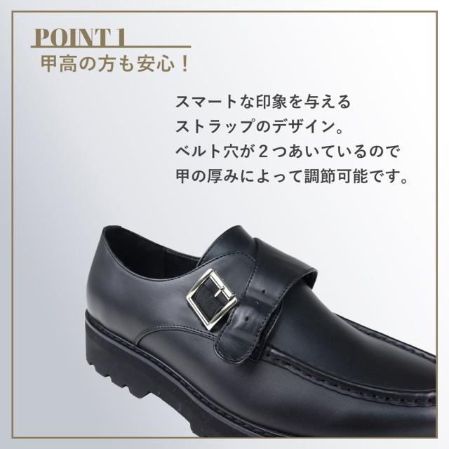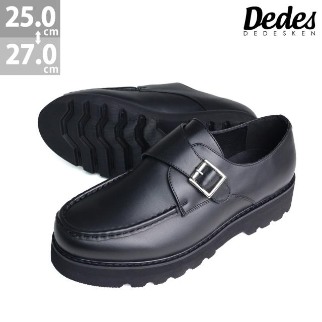 シューズ カジュアルシューズ メンズ 紳士靴 靴 Uチップモカ モンクストラップ ベルト ボリュームソール 脚長 4.5cmヒール 黒 ブラック 25.0cm〜27.0cm 黒 ブラック Dedes デデス No.6312