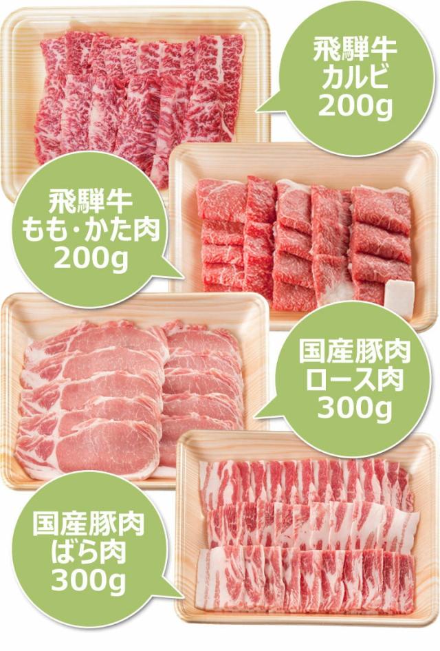 セット内容:飛騨牛カルビ200g/もも・かた肉200g・国産豚ばら肉300g/ロース肉300g・アメリカ産厚切り牛タン芯200g・ボーノポークぎふ/あらびきポークウインナー250g