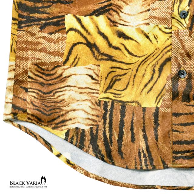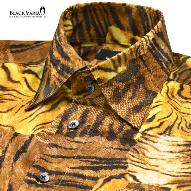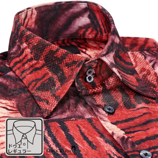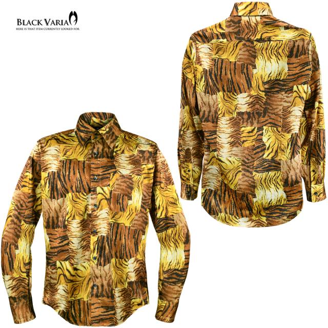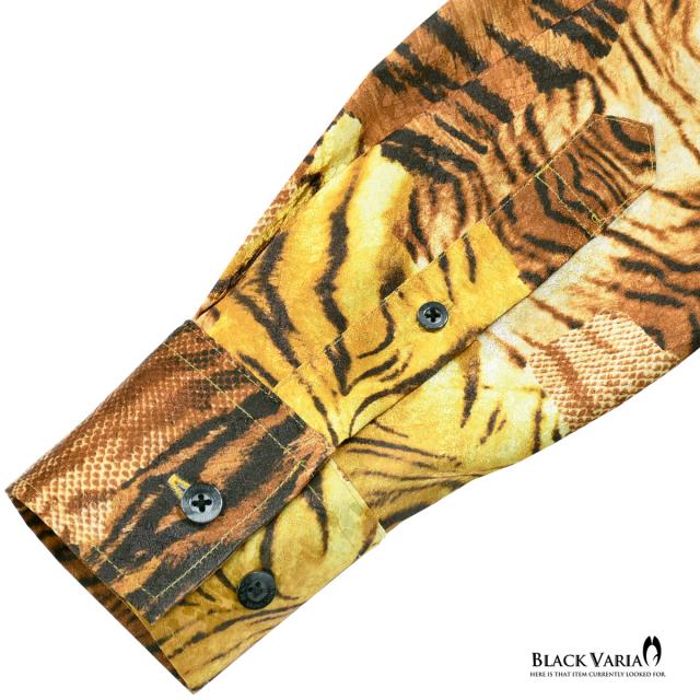 サテンシャツ ドゥエボットーニ タイガー柄 ドレスシャツ レギュラーカラー ジャガード パーティー メンズ mens(イエロー黄) 211201
