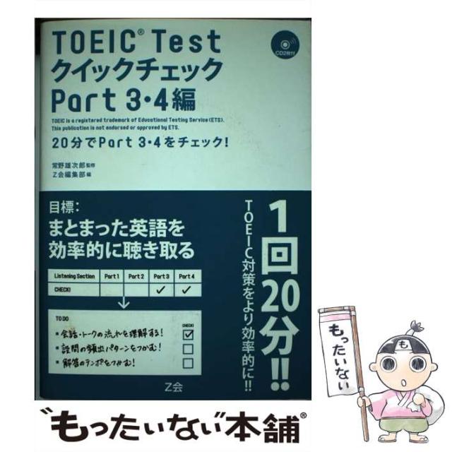 商品名:【中古】 TOEIC testクイックチェック 20分でpart 3・4をチェック! part 3・4編 / Z会編集部、常野雄次郎 / Z会 [単行本]【メール便送料無料】