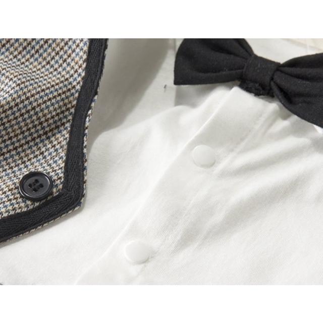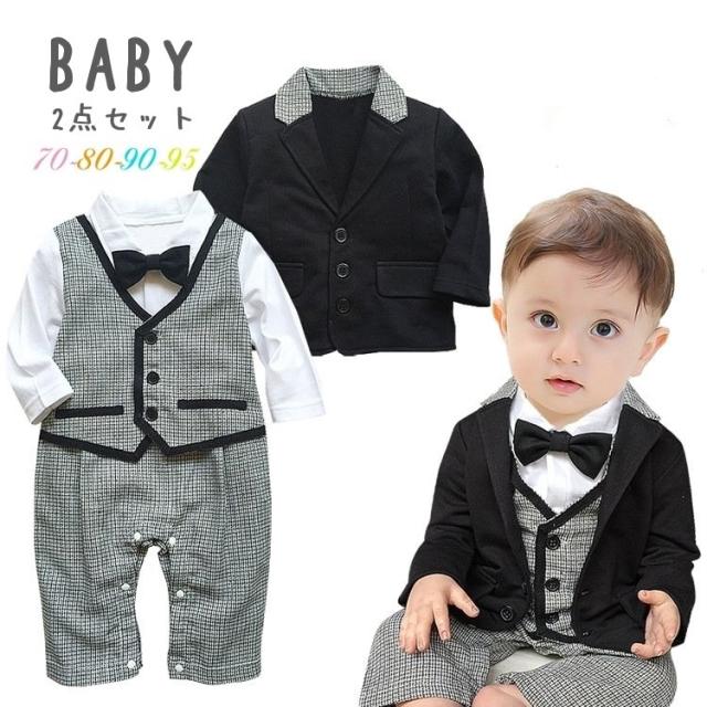 フォーマル スーツ セットアップ 2点セット ジャケット カバーオール ロンパース 長袖 股開き ベビー 赤ちゃん 子供 蝶ネクタイ 千鳥格子 おしゃ