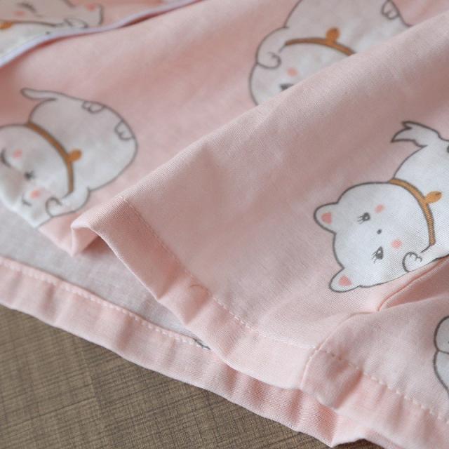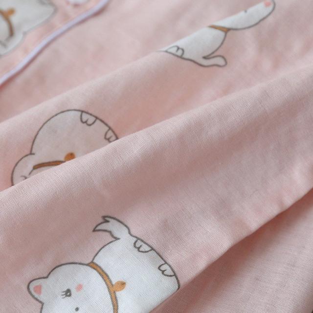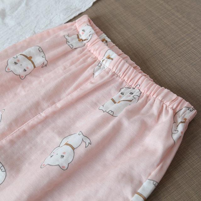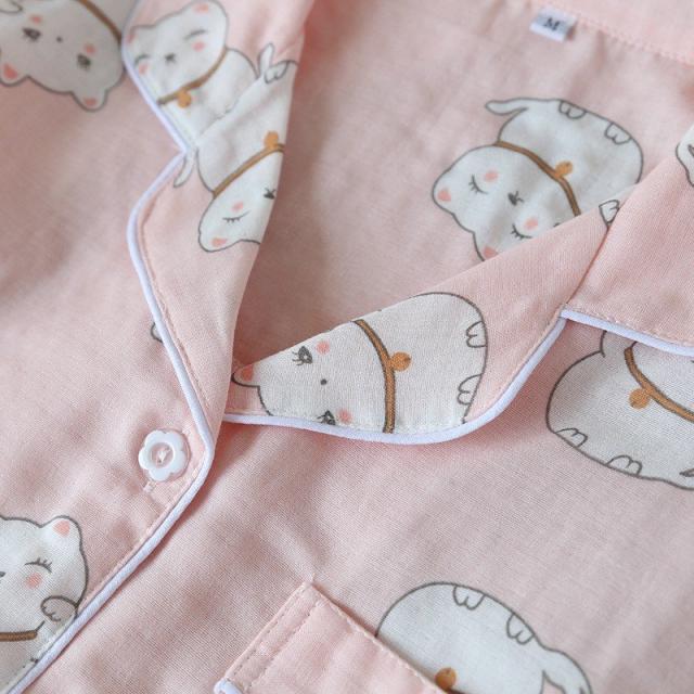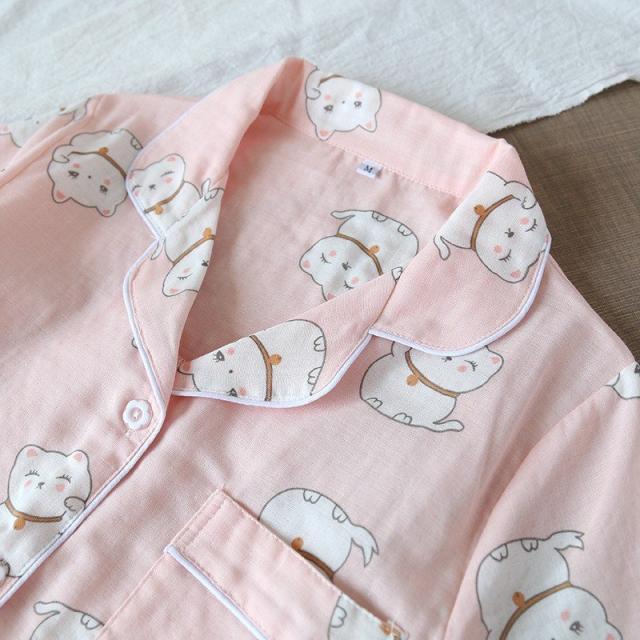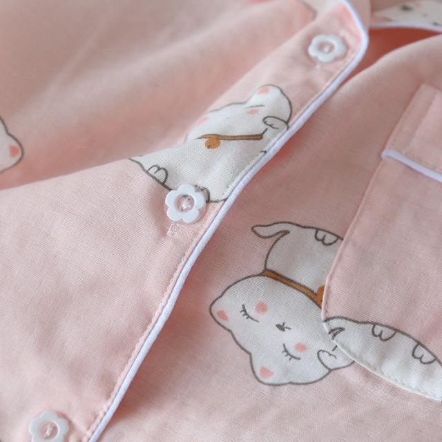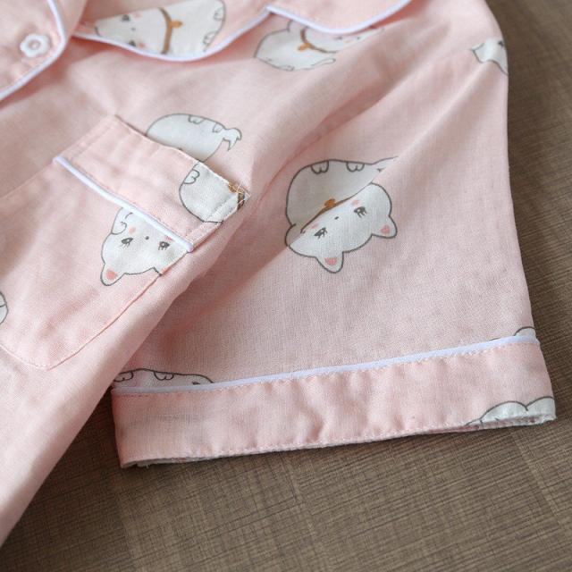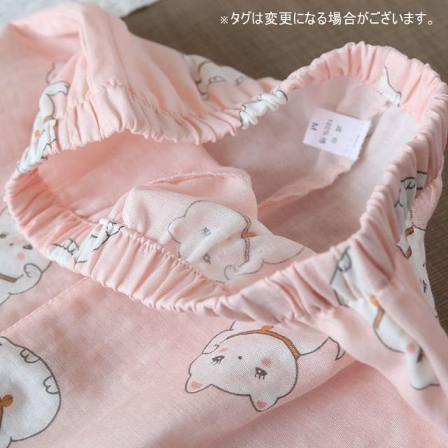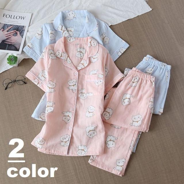 パジャマ ルームウエア レディース セットアップ 半袖 ロングパンツ 長ズボン 上下 2点セット ねこ 前ボタン 薄手 春 夏 かわいい 寝巻き