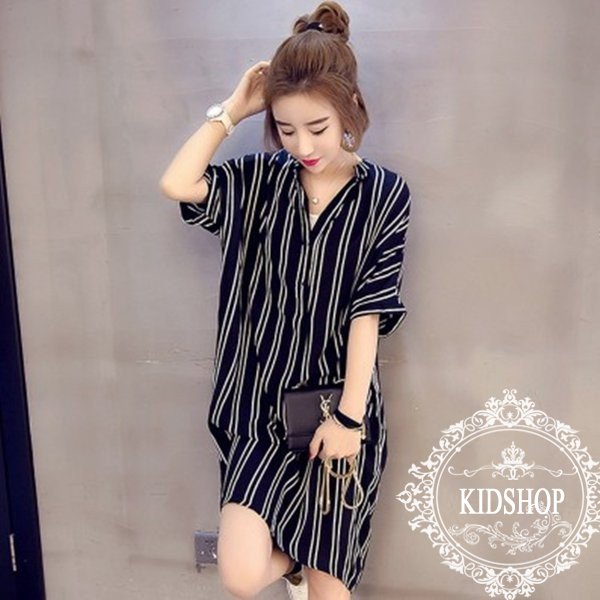 ワンピース 大きいサイズ 五分丈 膝丈 レディース シャツワンピース ストライプ柄 カジュアル ワンピース シフォンワンピース フレアワンピース 2020春夏新作