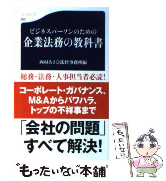 商品名:【中古】 ビジネスパーソンのための企業法務の教科書 (文春新書 862) / 西村あさひ法律事務所 / 文藝春秋 [新書]【メール便送料無料】