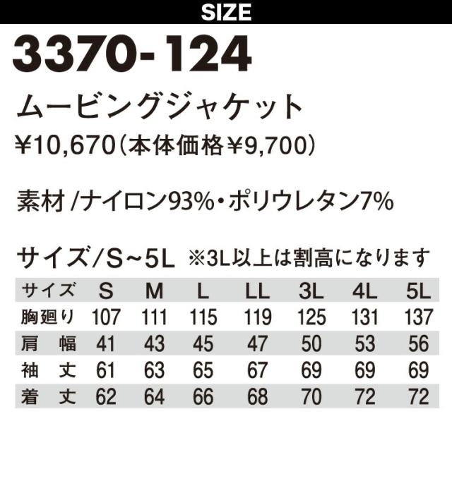 寅壱 3370-124 ムービングジャケット 細身 動きやすい 2021年 寅壱 新作 作業着 作業服 秋冬 2021年 新作 かっこいい おしゃれ メンズ