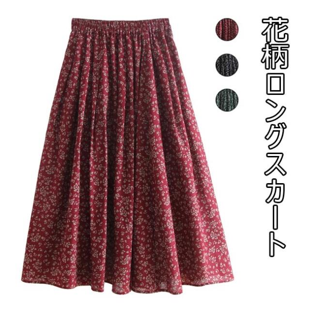 ロングスカート 花柄 レディース スカート Aライン 花柄ロングスカート レトロ ウエストゴム 花柄スカート マキシ丈スカート エスニック風