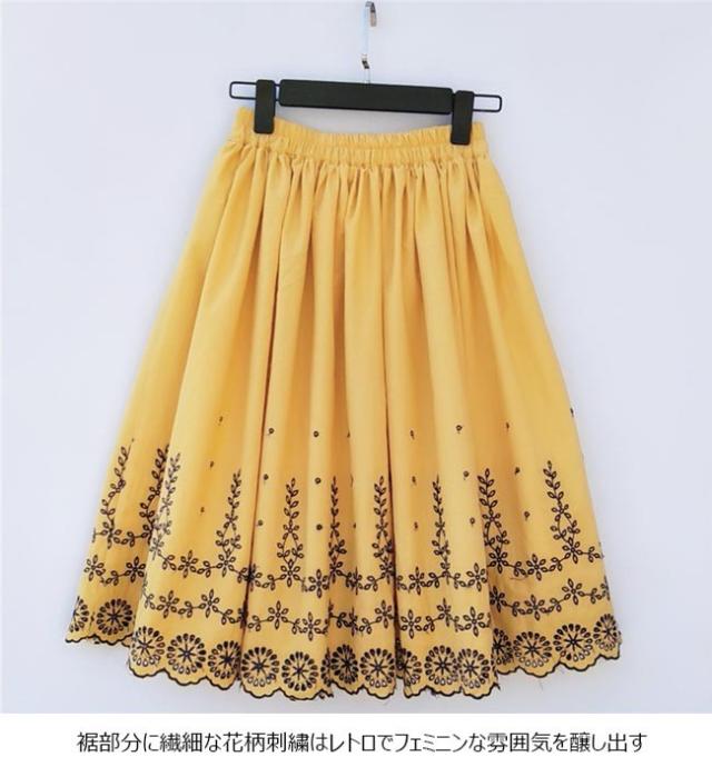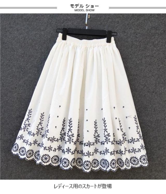 フレアスカート レディース 刺繍スカート Aライン スカート ロングスカート ウエストゴム Aラインスカート 刺繍 レトロ お洒落
