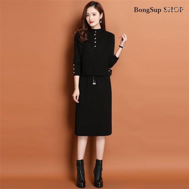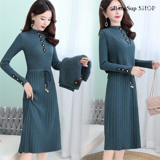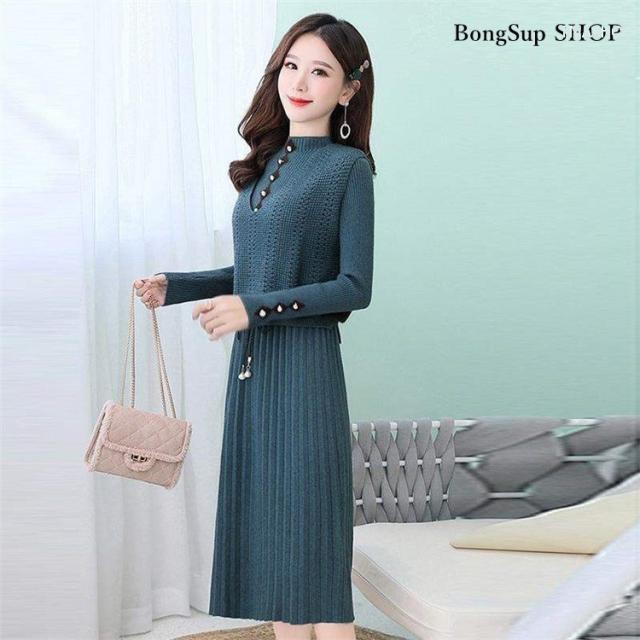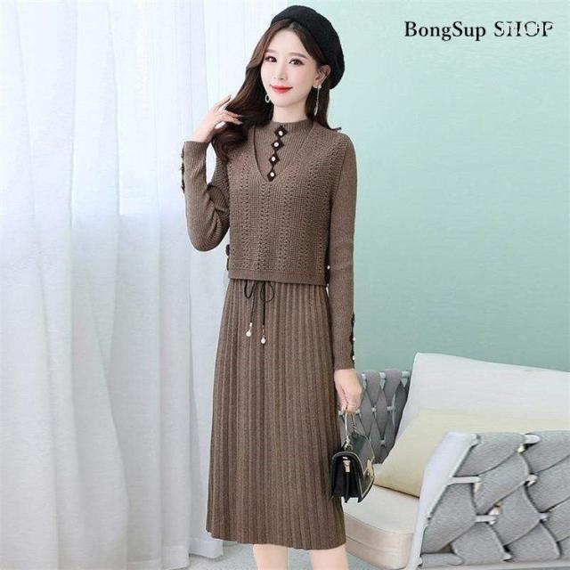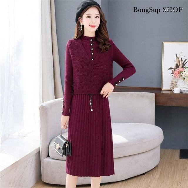 ニットワンピース セットアップ レディース 40代 マキシ丈ワンピース 長袖 秋冬 ニットセーター 無地 プリーツスカート ロング丈 上品 通勤 結婚式ドレス 着痩せ