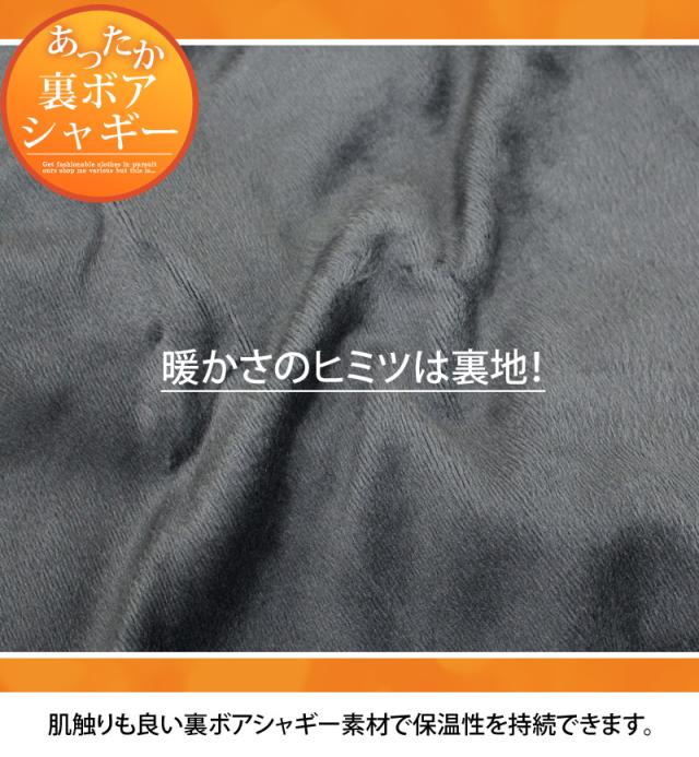 ・肌触りも良い裏ボアシャギー素材で保温性を持続できます。