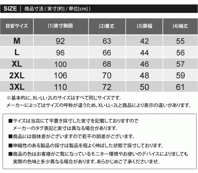 メーカーによってはサイズの呼称が違うため、XL・LL・2Lと商品により表示の違いがあります。