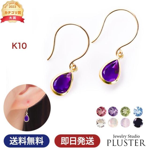 ピアス しずく 2月 誕生石 アメシスト 誕生石 天然石 ブルートパーズ ガーネット 金属アレルギー 10K 10金 揺れる ゴールド バースデー パワーストーン 色石 オニキス 雫 レディース アクセサリー 誕生日 プレゼント 女性 ホワイトデー