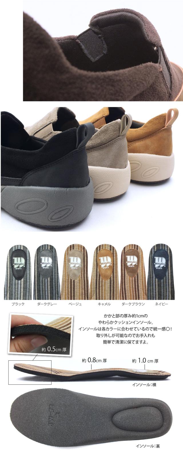 WILSON LEE SPORTS-ウィルソンリースポーツ-“足にやさしく(SOFT&FIT)”をコンセプトに、快適性を追求するシューズブランド。アッパーには上質なスウェードとヌバック調の2種コンビを採用!どんなスタイルにも合わせられる履きまわしの良さが◎スリッポンシューズでサイドゴア付きなので脱ぎ履ぎがとてもらくちん!インソールは取り外しが可能で、お手入れもでき清潔に保てます。接地面から4cmは防水設計で4時間耐久!雨の日も安心してお使いいただけます。3Eの幅広設計でゆったり楽々ストレスフリーな履き心地をお届けします。
