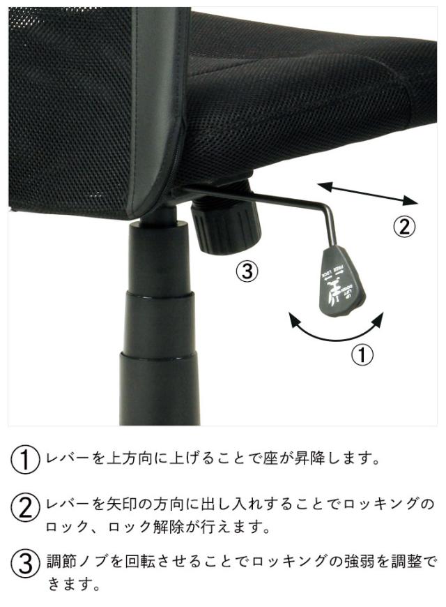 座昇降(ガスシリンダー式)機能付、ロッキング機構付