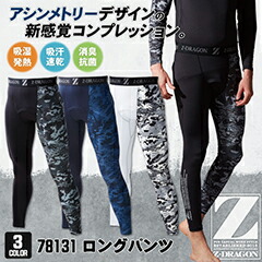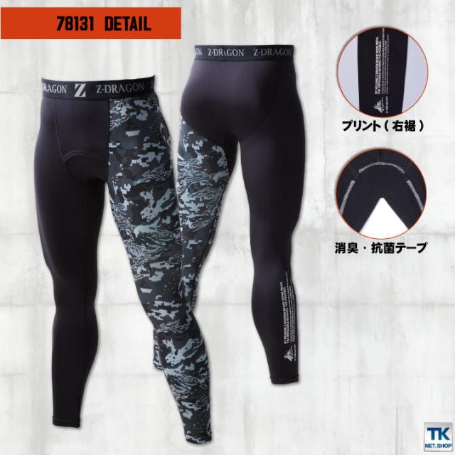 自重堂 Z-DRAGON ロングパンツ インナー 裏起毛 吸湿 吸汗 速乾 消臭 抗菌 温かい カモフラ アシンメトリー メンズ かっこいい カジュアル ネコポス 秋冬 jd-78131