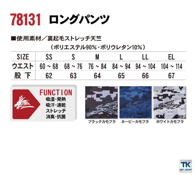 78131 自重堂 Z-DRAGON ロングパンツ インナー 裏起毛 吸湿 吸汗 速乾 消臭 抗菌 温かい カモフラ アシンメトリー メンズ かっこいい カジュアル