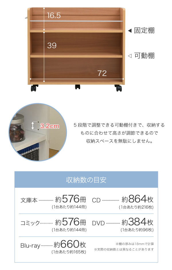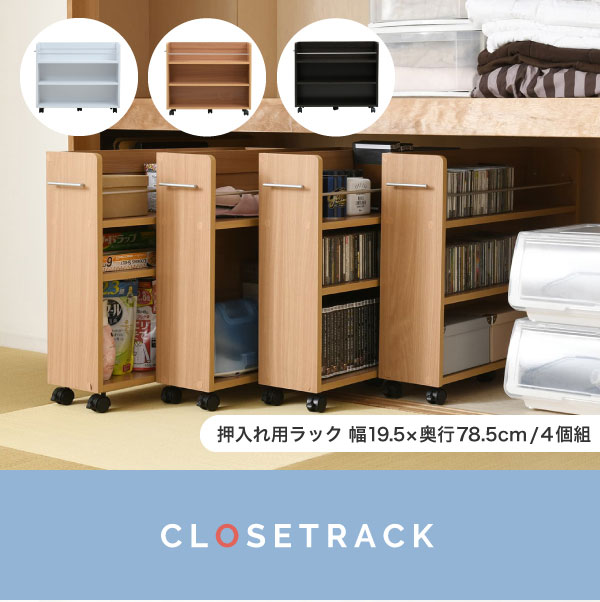 押入れにぴったり入る、キャスター付きラック4個組。押入れ内のスペースを有効活用して、本やメディア、日用品を収納できます!