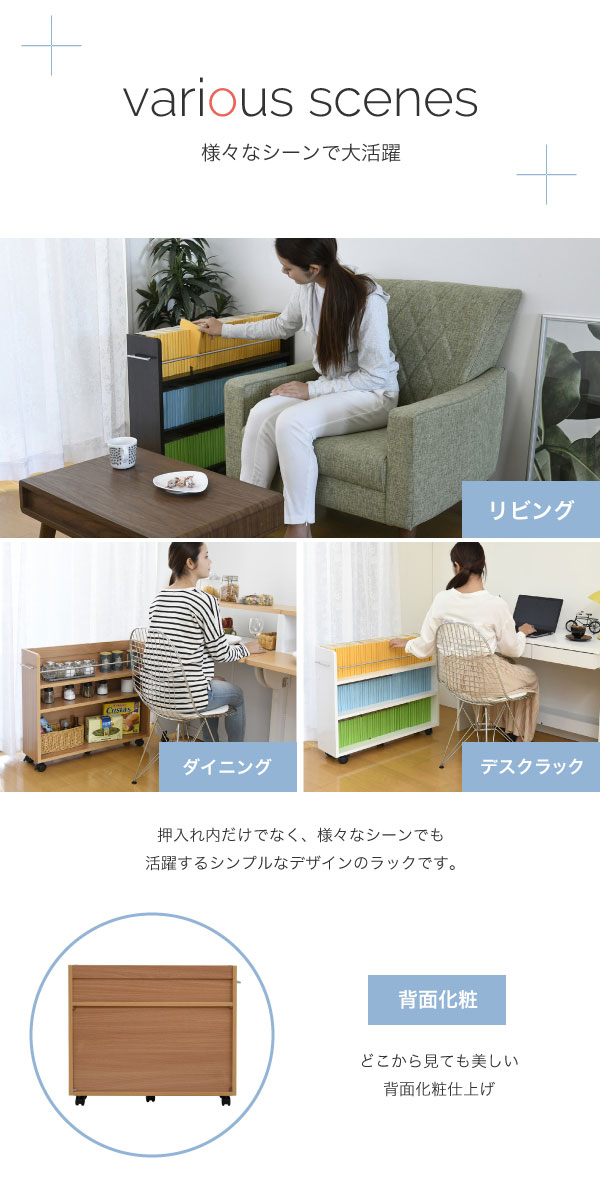 押入れ収納 押入れ収納棚 可動式 キャスター 押し入れ 押入 漫画本 コミック 雑誌 雑貨 学用品 おもちゃ かばん ランドセル リュック バッグ 日用品 一人暮らし 1人暮らし 薄型 木製 ホワイト 白 ナチュラル ダークブラウン シンプル