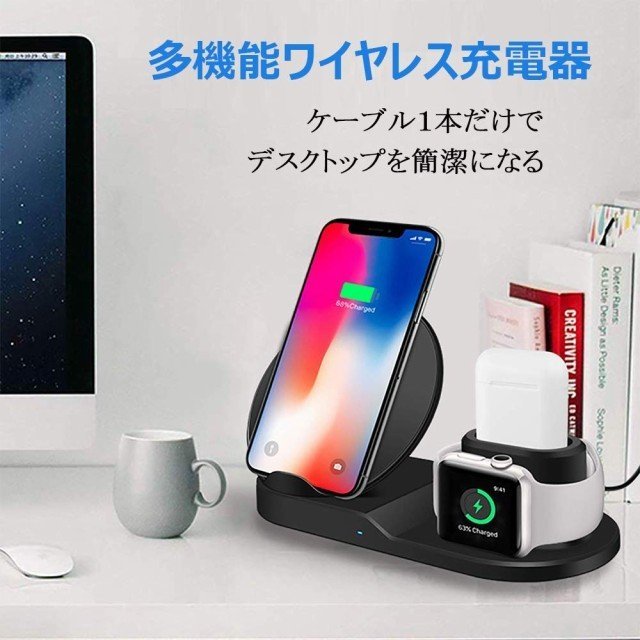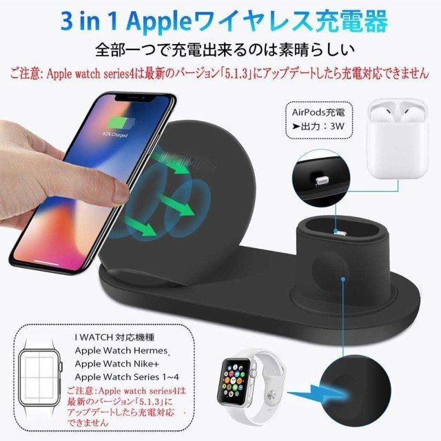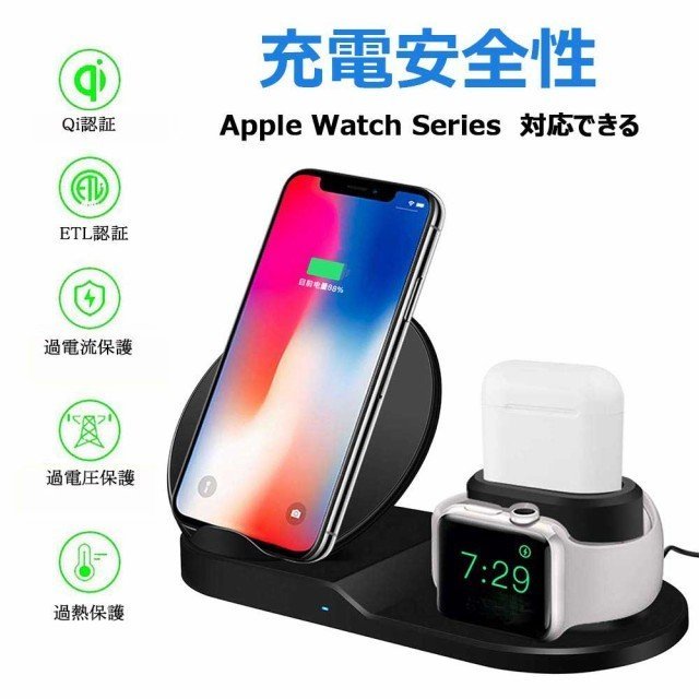 Qi ワイヤレス充電器 急速 3 in 1充電スタンド apple watch スタンド Airpods/Apple Watch充電器 iPhone X/XS/XR/XS Max/ 8/8 Plus Qi 7.