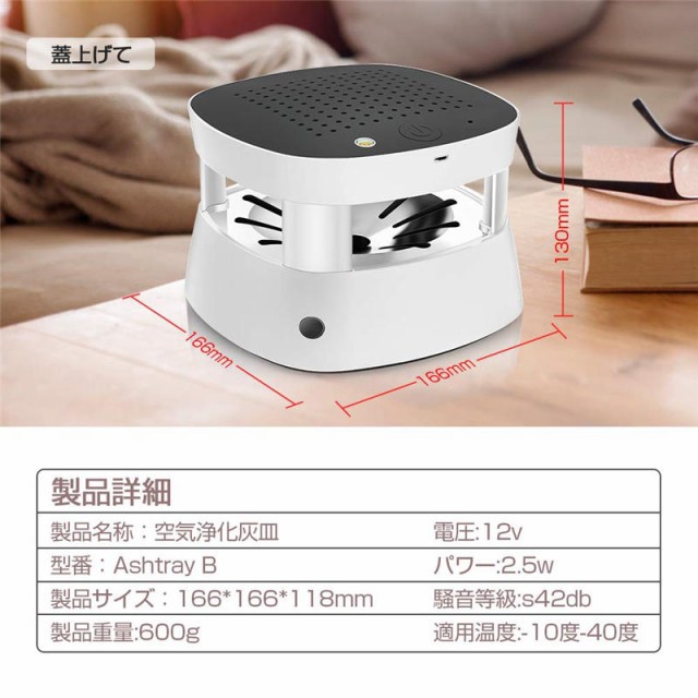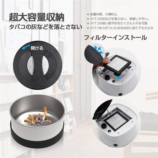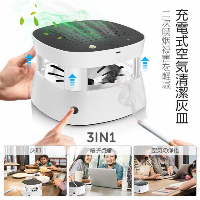 灰皿 空気清浄機 脱臭機 イオン発生器 電子ライター 充電式空気清浄 パーソナル 卓上日本語説明書付き スモークレス灰皿 高性能フィルタ