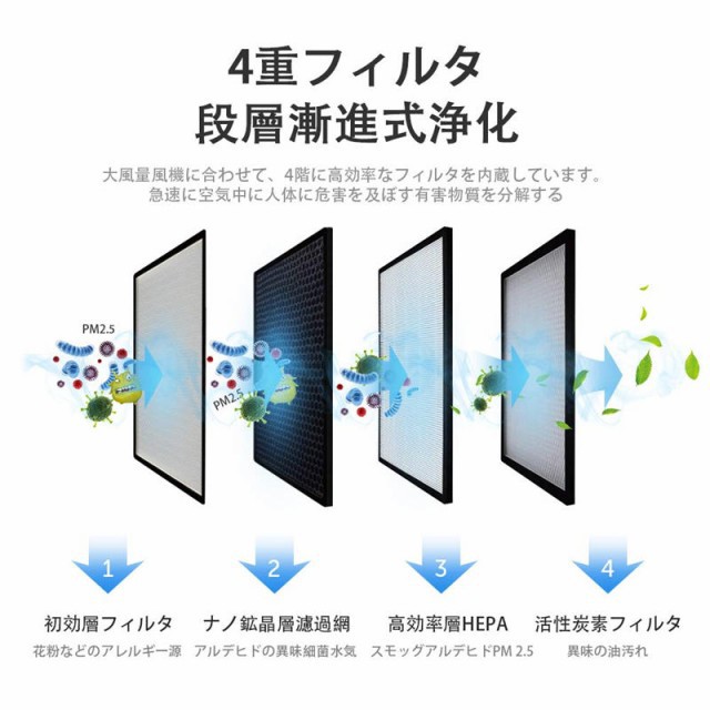 本商品は集塵、脱臭能力が抜群ので、0.1μmまでの微細粒子を除去できます。
