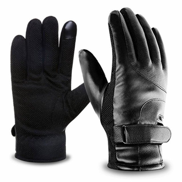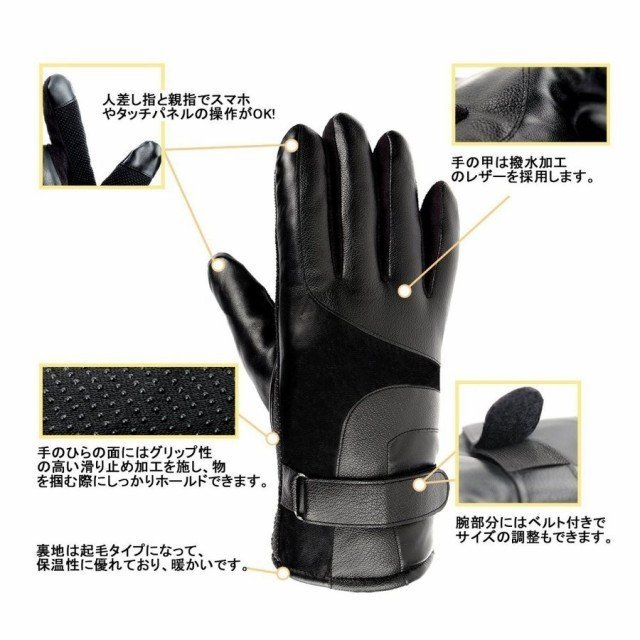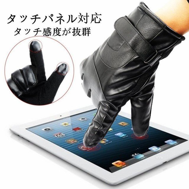 バイク手袋 レザー手袋 保温グローブ スマホタッチパネル対応 裏起毛 滑り止め付き 耐磨防寒防風 スポーツ アウトドア