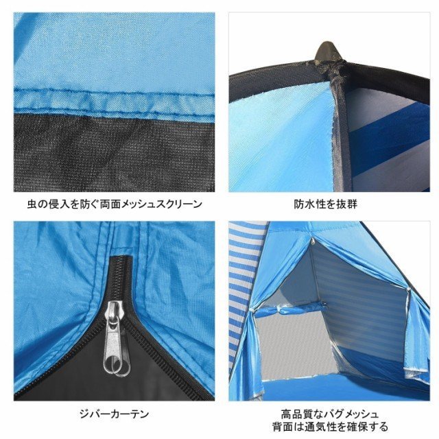 サンシェードテント ワンタッチテント フルクローズ ビーチテント ポップアップ 大空間 2-3人用収納便利 日焼け止めUV50+ 防水タープ