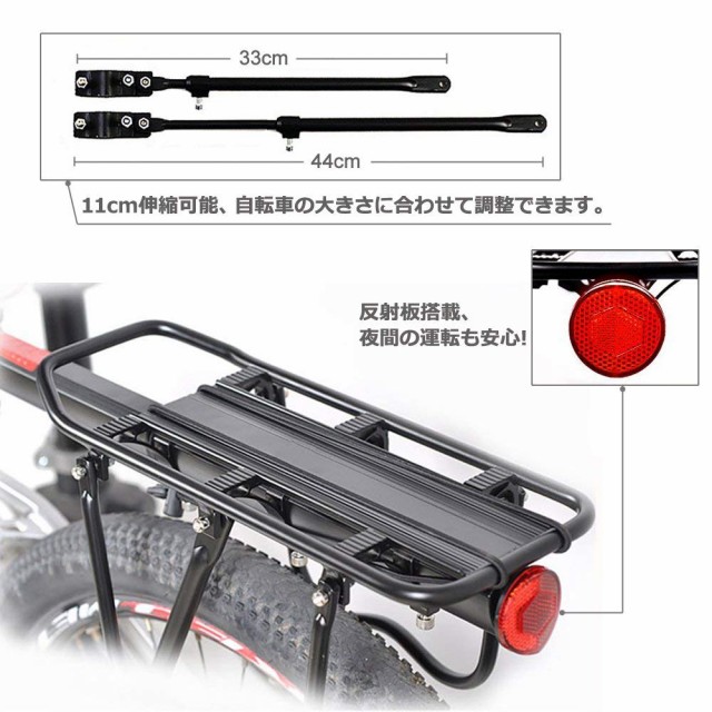 自転車 荷台 後ろ付け リアキャリア 耐荷重25kg バイク キャリア 反射板付 アルミ製