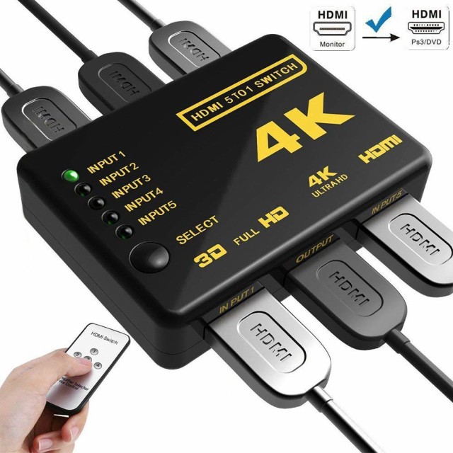 HDMI セレクター HDMI 分配器 HDMI 切り替え 5入力1出力 PS3 PS4 任天堂スィッチ Xbox Fire TVなど対応USB給電ケーブル付 リモコン付