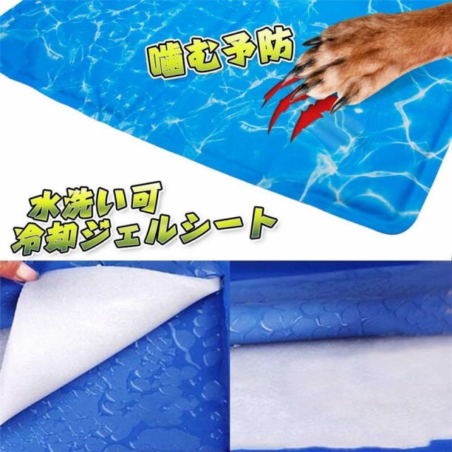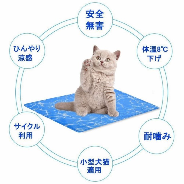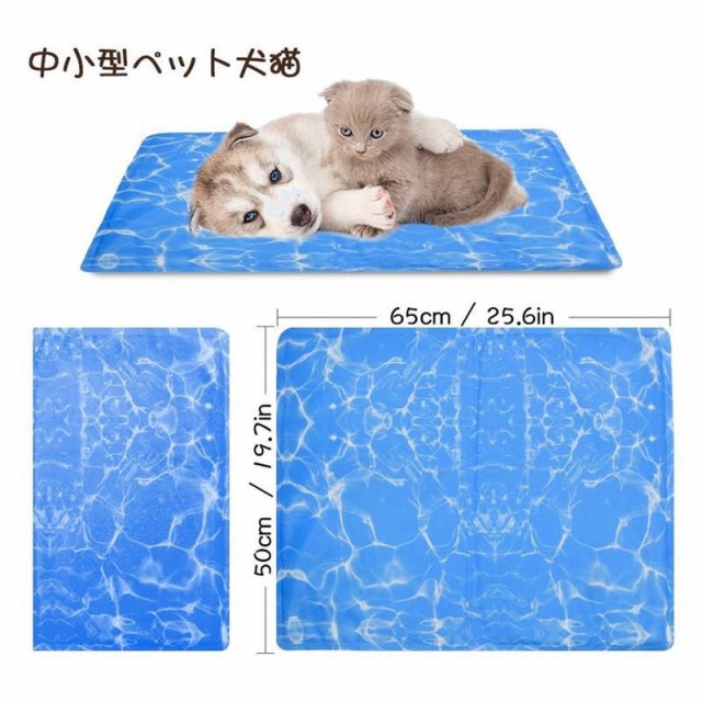 ひんやりジェルマット、ペットの夏暑さ対策品として大人気!!!丈夫な材料でペットの爪に負けません外装のカバーが高品質なPVCライロンとPE膜の2重で作られてるので、品質優れて厚みも十分あり、犬の軽い噛みや爪引きには耐えられる冷却マット、噛み癖のワンちゃんに負けない丈夫さ、耐久性優れてるだからこそ、内部のジェル材が浸透して出てくる心配もございません、丈夫で安全な夏用犬猫ベッド。ペットの夏用クーラー、熱中症対策品。使い方色々、ペットや人間通用1:シートを取り出して、直接床や地面に敷いてその上にペットを寝かせます。(シートの上にタオルを敷いても大丈夫)2:ペットのベッドやケージに入れて使います。3:ノートパソコンの温度下げシート4:オフィス椅子に置いて涼しい座布団として使います。5:足置きマット暑い夏にはペットや人間に適度な冷たさで涼感を与えてくれます。折りたためるので、収納便利4つ折りにできるので、コンパクトに折りたたんでしまう時も場所を取らなくていいです。持ち運びにも便利なクールマット、ひんやりシート。省エネ経済的なクールマット、電気いらずで地球に優しくひんやり爽快!サイズ:65*50cm、猫や中小型犬、ウサギなどの小動物に適用します。