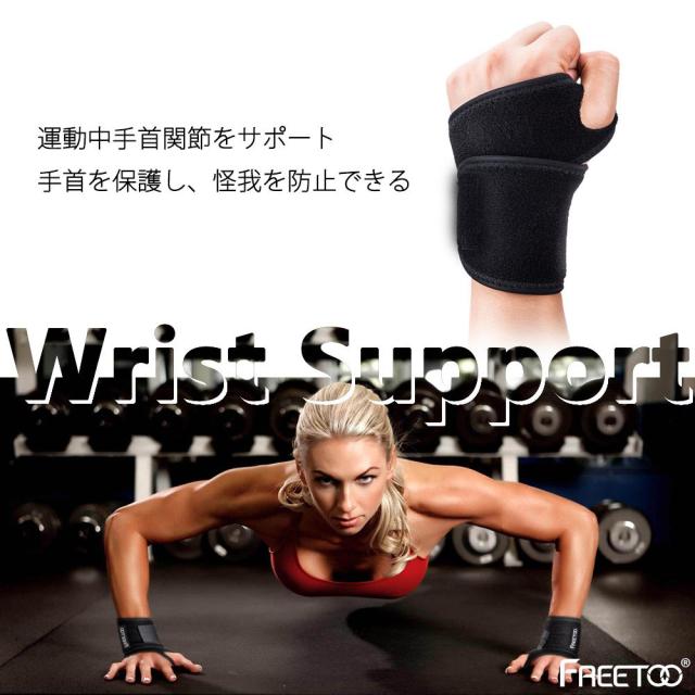 手首用サポーター リストサポート 手首固定 保護 怪我防止 フリーサイズ 男女左右兼用 ブラック