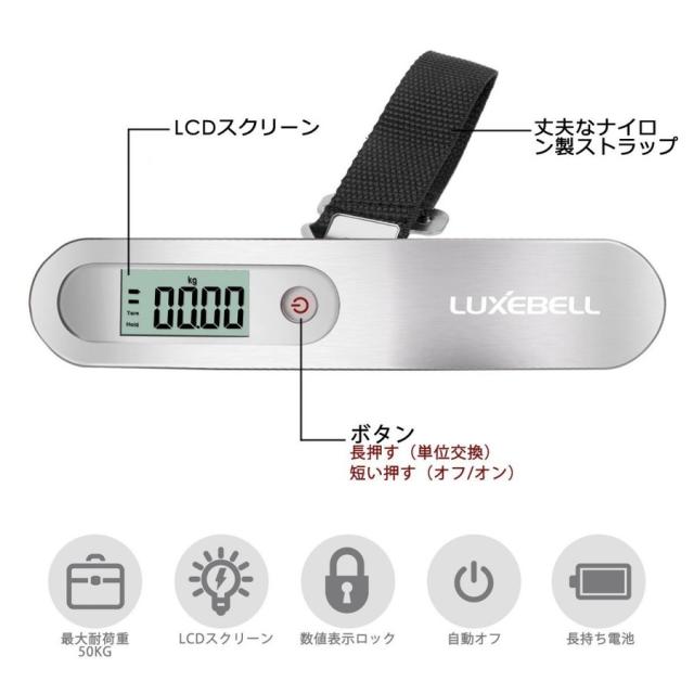 吊りはかり 荷物スケール 旅行用ベルト式吊り下げデジタルスケール 携帯便利[0.01kg-50kg]