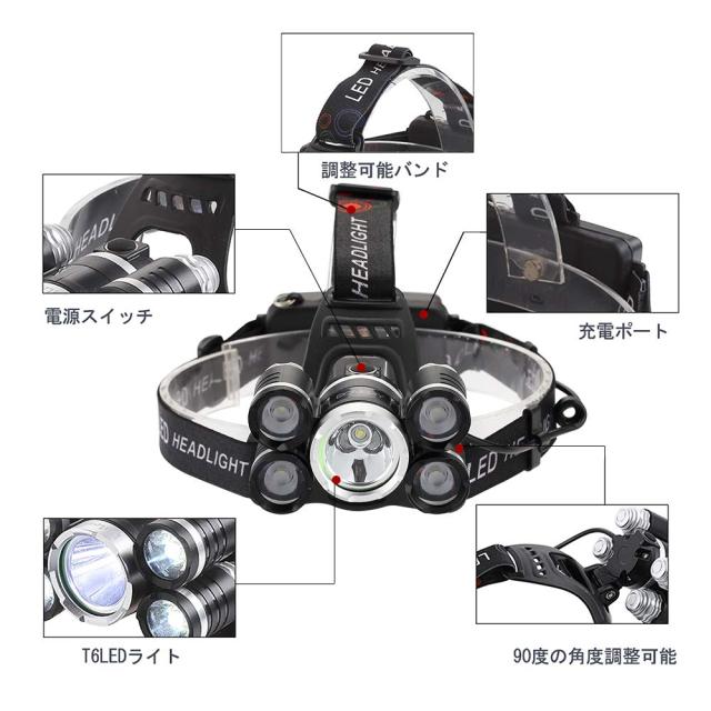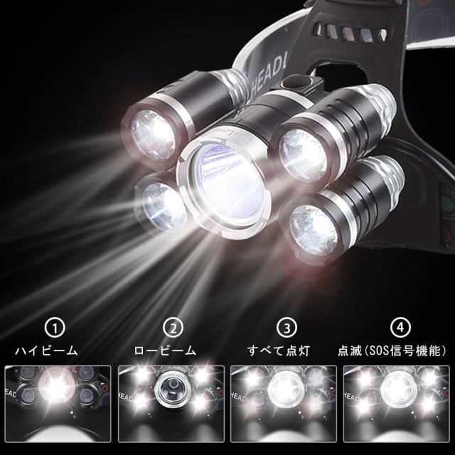 LED 高輝度ヘッドライト USB充電式18650バッテリー付き 5000LM PSE認証済 防災防犯4モード発光 アウトドア 釣り登山適用 作業灯
