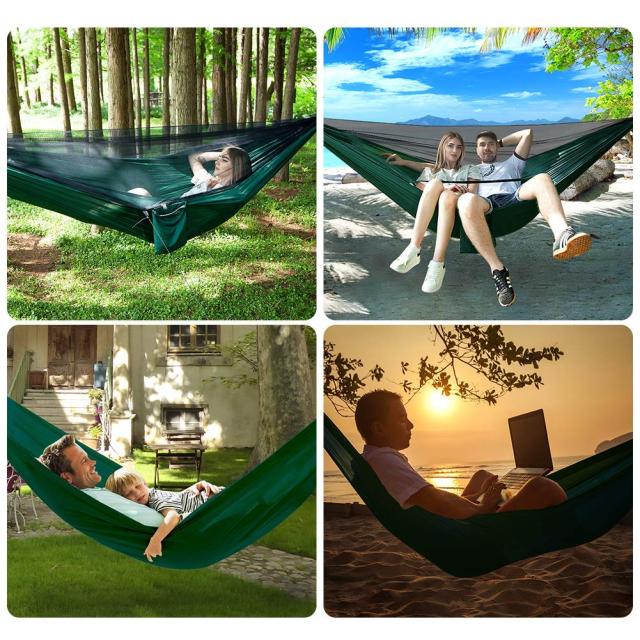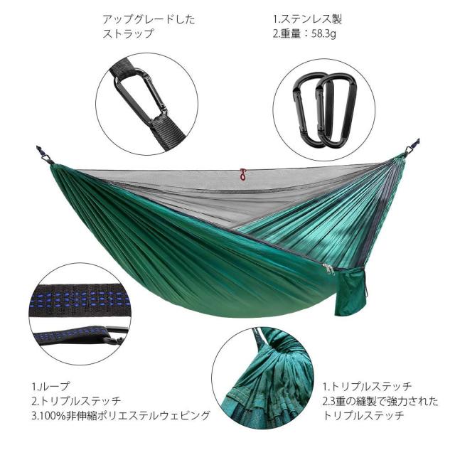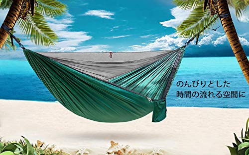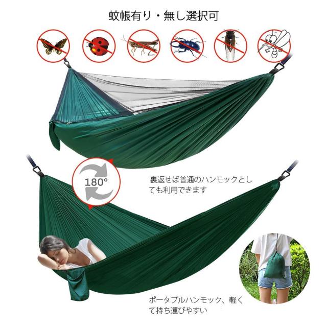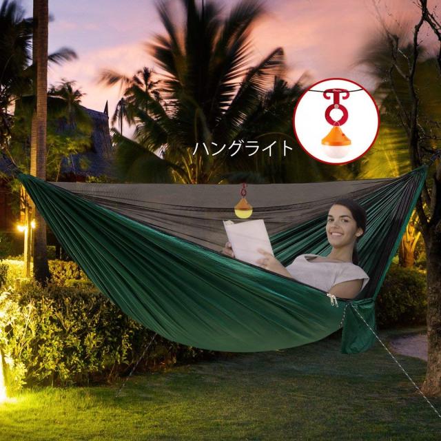 ハンモック 蚊帳付き 高品質 パラシュート フック付き 虫対策 耐荷重300kg 簡単取り付け ダブルハンモック【2.9X1.4m】収納袋付き