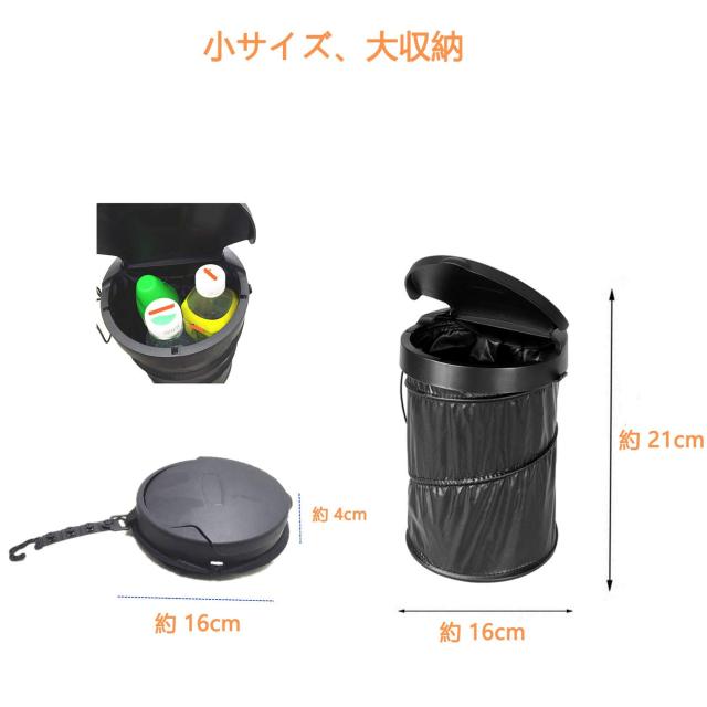 【小サイズ、大収納】サイズ展開: 約 21*16*16 cm / 折畳んだ厚さ:約 4 cm / 重量: 約 200 g / 容量: 約 4 リットル。 折りたたみゴミ箱、サイズが小さい。必要しないなら、折りたたんで、ご愛車のスペースを最大に節約できます。