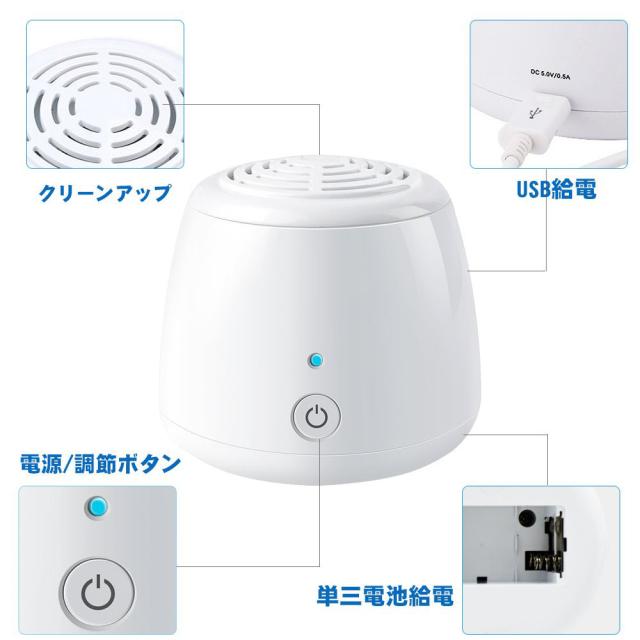 ミニ空気清浄機 エアクリーナー オゾン発生器 花粉対策 消臭 除菌 電池/USB給電 ホーム/オフィス/車載/冷蔵庫/トイレ 省エネ