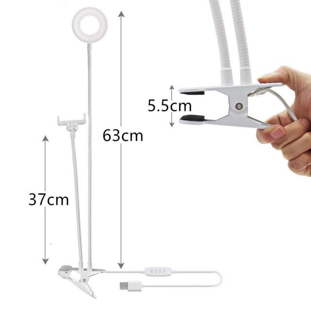 スマホスタンド スマホホルダー 照明 クリップ式 USB フレキシブルアーム 自撮り 録画 読書などに適用