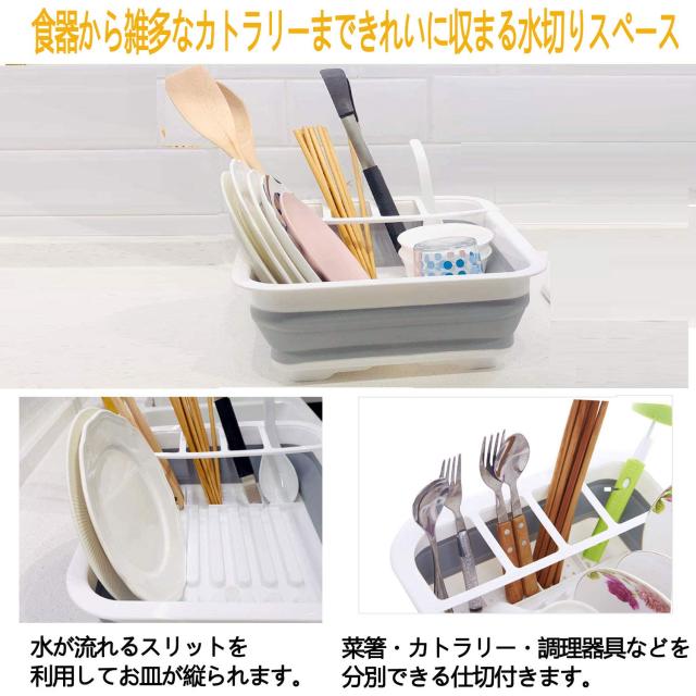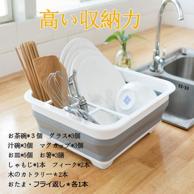 水切り かご 食器 ラック 折りたたみ バケツ ディッシュラック 止水栓付き 排水レール付 洗い桶 かご 人気 デザイン スポンジホルダー付き ふきん掛け 石鹸 スポンジ 置き キャンプ アウトドアに最適