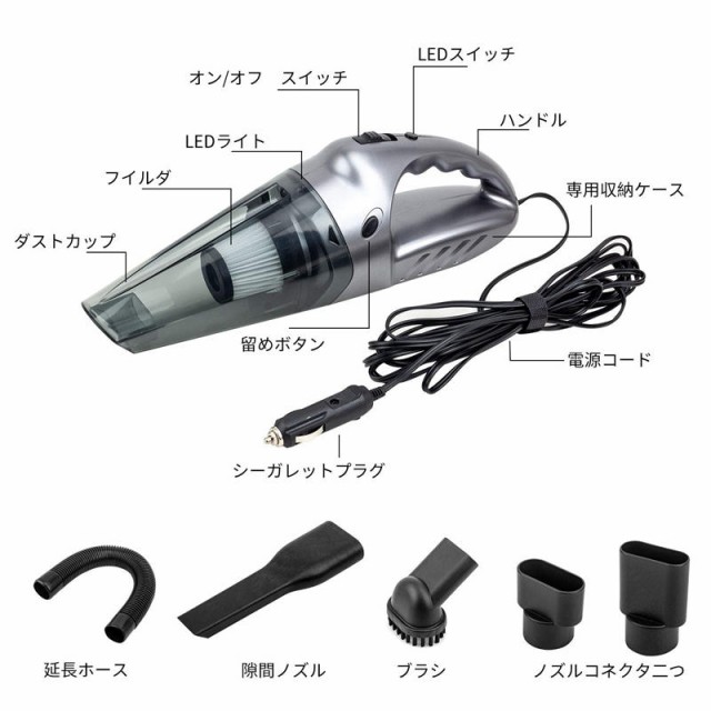【2019最新版静音性】車用掃除機 超強吸引力 乾湿両用 高出力 小型 コードあり 多機能 軽量 掃除機 LEDライト付き5Mケーブル ハンディク