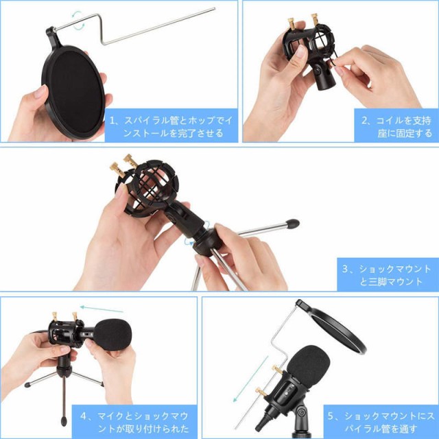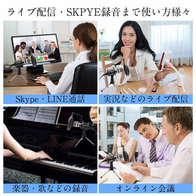 ★【多機能】Youtube、ツイキャス、ニコ生、ゲーム実況などのライブ配信、Skype、LINEなどの通話、楽器、音楽、番組の録音、さまざまな用途で使用できるコンデンサーマイクセットです。ポップフィルター&三脚スタンドも付属するので、このセットだけで配信や録音が可能。