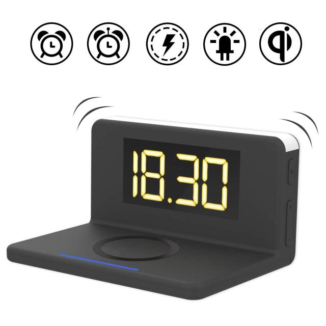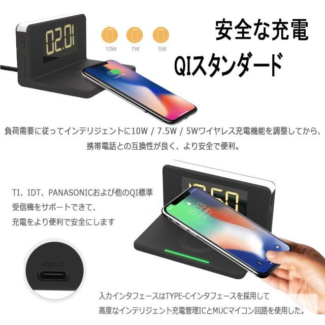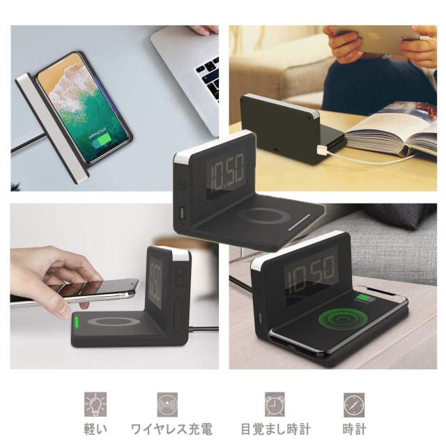 目覚まし時計、デジタル時計、ワイヤレス充電、スヌーズ、夜間照明、USB出力、全部一つの製品に統合されています。