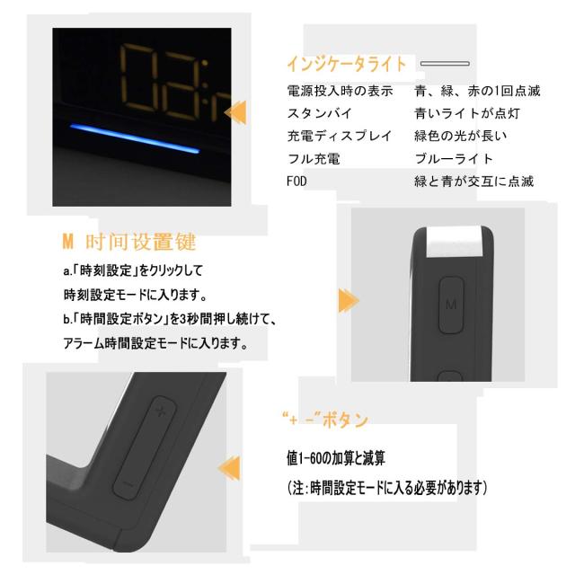 製品名:ワイヤレス充電夜の光の目覚まし時計