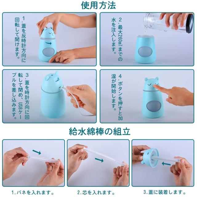 加湿器超音波式アロマディフューザー 7色LED付き USB充電 卓上加湿器 車載加湿器 省エネ 水漏れ防止 空焚き防止 オフィス
