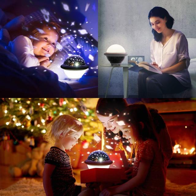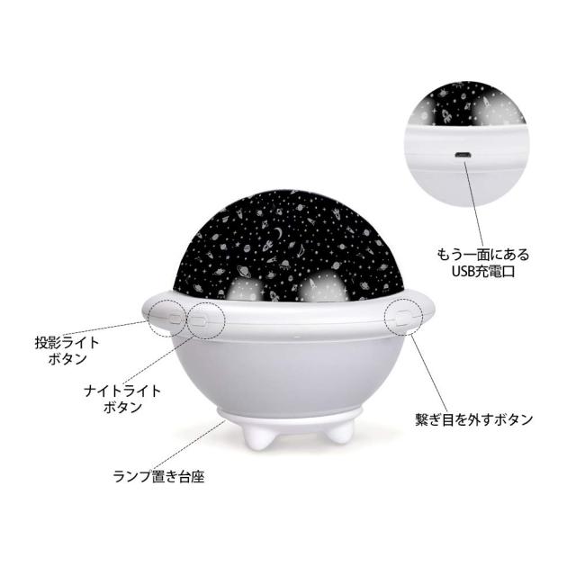 【UFOの形&二つの機能】丸くて愛らしいUFOのプロジェクターランプ、ご家庭で楽しめる室内用スタープロジェクターとしてだけでなく、普通のナイトライトとして使用することもできます。左側のみたいなボタンを押せば、スタープロジェクター機能、右のボタンを押せば、ナイトライト機能が作動します。