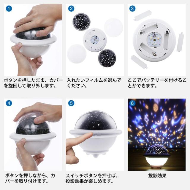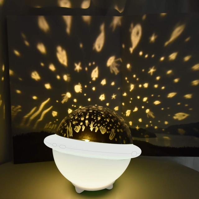 【6つの投影ライト効果&2つのナイトライト効果】投影ライトは、ボタンを押すごとに色が変わります。
