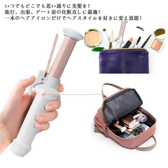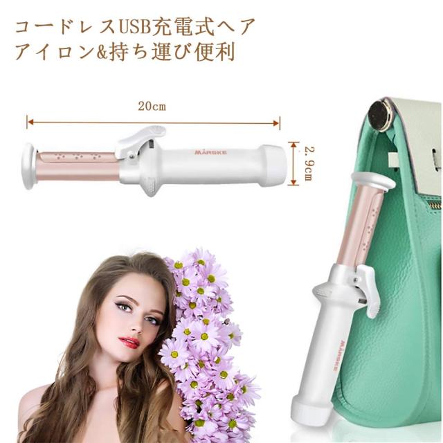 カールアイロン ヘアアイロン カール コンパクト USB充電式 旅行用コテ 急速加熱 軽量 充電式 コテ 携帯用アイロン コードレス 自動電源OFF 乾湿両用 コンパクト携帯用 家庭用 旅行用 男女適用 日本語説明書付き