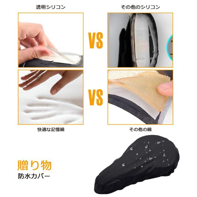 自転車サドル 低反発サドルクッション 自転車 サドルカバー 超肉厚 衝撃吸収 滑り止め強化 人体工学 防塵/防水カバー付き