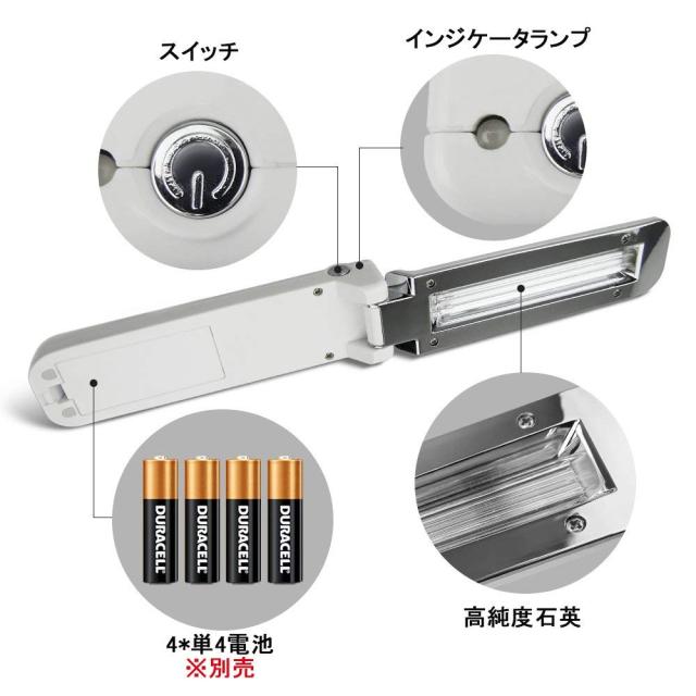 【使いやすい】 UVサニタイザーハンドワンドは、バッテリーまたはUSB充電器(4 *単4電池は含まれていません)で電源を入れます。 オン/オフボタンを3秒間クリックすると、インジケータランプが青色に変わり、作業が可能になります。消毒したい所をスキャンしてOKです。 ポケットサイズ、コンパクトのデザインは使いやすくなっています。