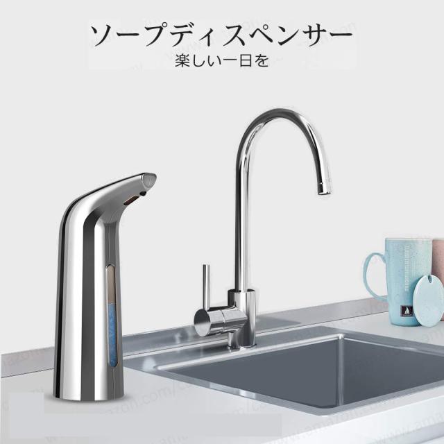 自動ソープディスペンサー タッチレス キッチンシンク 浴室 シャワー用 400ml 14オンス シルバー