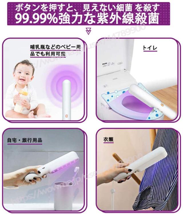 紫外線ライト 除菌ランプ UV殺菌灯 電池式 超軽量 携帯便利 強力除菌 99%細菌消滅 梅雨の日に適用 高品質